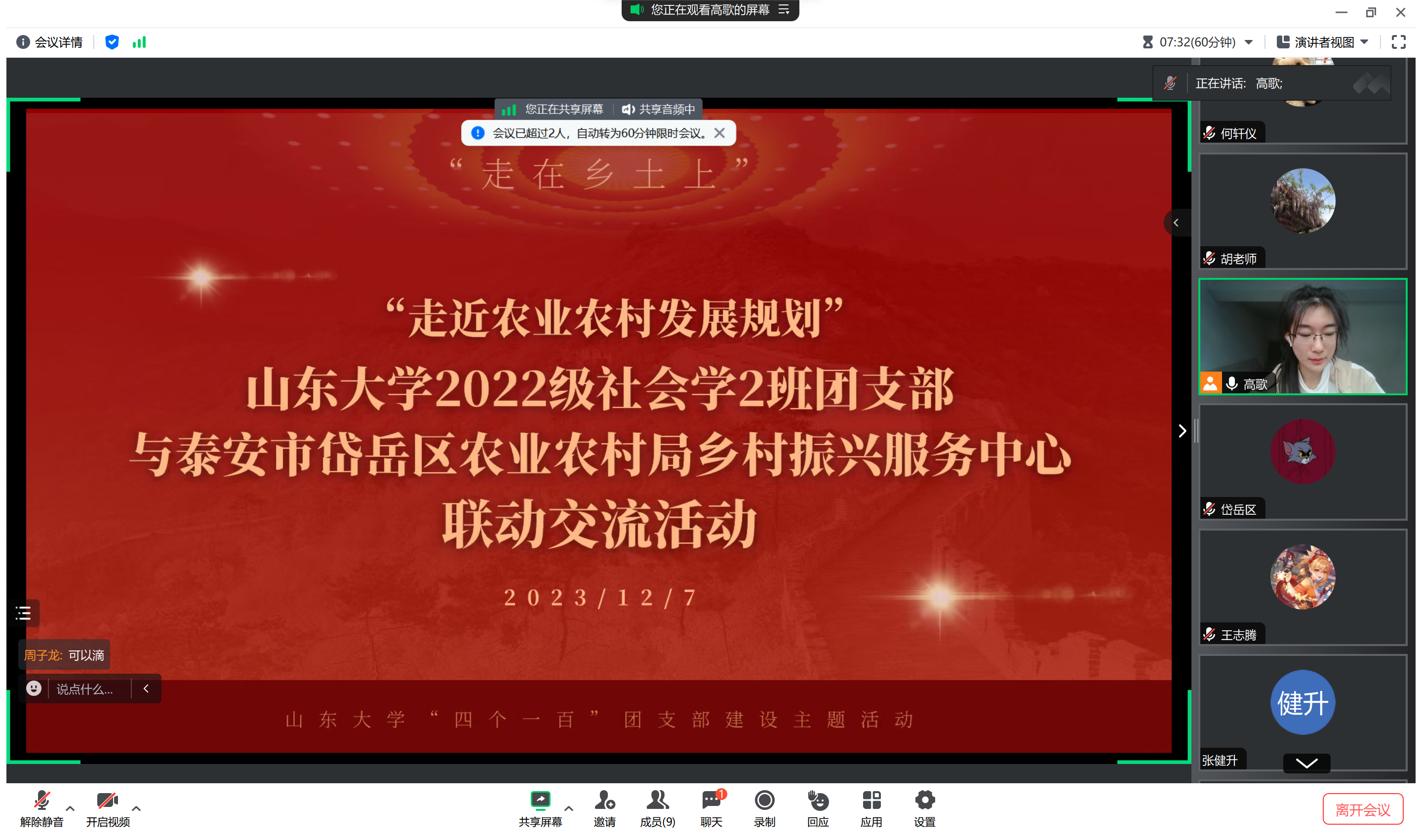 学党史、强信念、跟党走:2022级社会学2班团支部举办“与泰安市岱岳区农业农村局的联动交流”主题团日活动