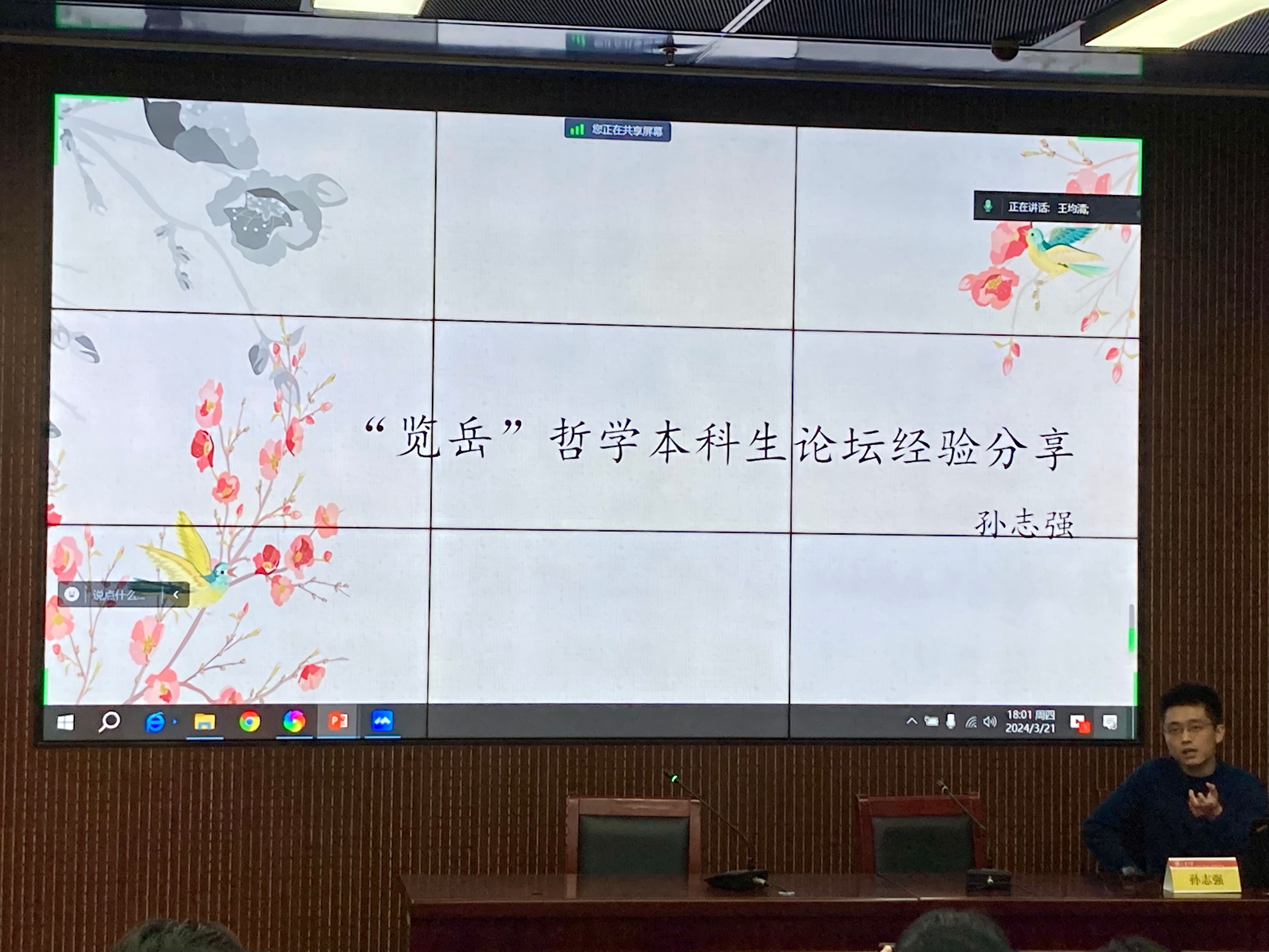 2024年3月21号下午,由成人在线免费视频主办的“览岳”哲学本科生论文竞赛师生经验分享会在知新楼A座115顺利举行。本次活动邀请到吴童立、冯波、王丁、陈佩辉、孙志强等优秀青年教师,期间老师们向与会同学分享了自己治学问学经验;同时,历届“览岳”论坛的多位获奖学生到场,和大家一起交流和讨论了参与论坛和写作论文的体会与收获。