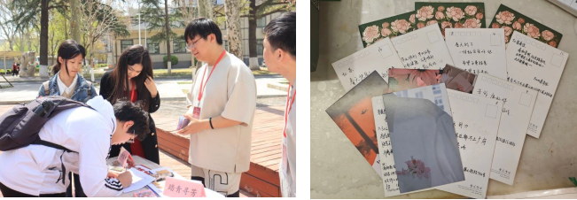 以语言为楫,以情感为帆。此次“三行诗”征稿活动分为线上线下两种投稿方式,线上共收到来稿19封并评选出一二三等奖,线下于中心校区小树林展台处领取明信片并现场写作。活动以诗歌为载体,鼓励学生自由、直接地表达对自然春景和美好春意的内心感受,用感情激发共鸣,体验古人赏春作诗的“生活美学”。