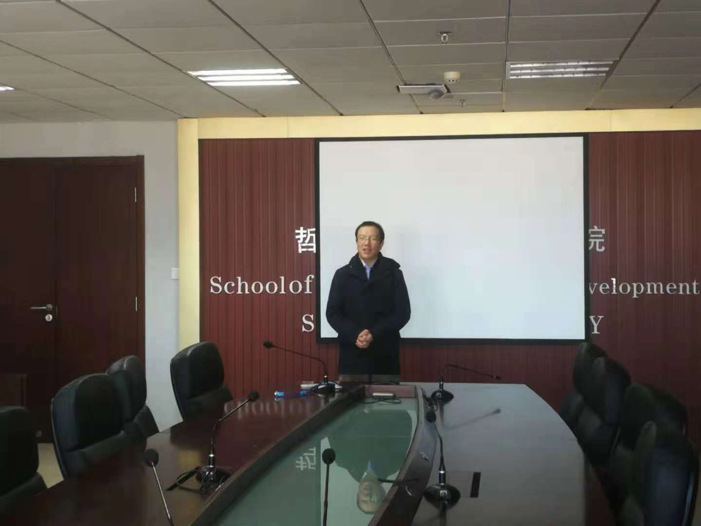 无论是威海校区还是中心校区的社工同学都满怀期待,不约而同地在约定时间前就都早早到达了会议室。首先,同学们各自做了一个简单的自我介绍,许是社工的特色,同为社工人的同学并不拘谨生分,十分自然热络地交流起来。待到两校区的同学对彼此有了初步了解后,中心校区的于淼老师与威海校区的马艳超老师各自做了讲话,分别介绍了各自专业的教学状况如课程的设置、人员数量等便于交流学习与教学经验,并表达了对此次交流活动的期待与热盼。马老师还讲述了其与社工专业的渊源以及教学与实务经历,分享了他丰富的经验。