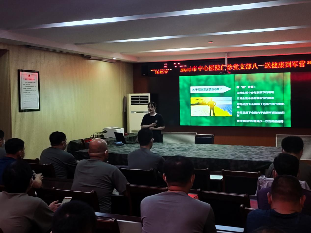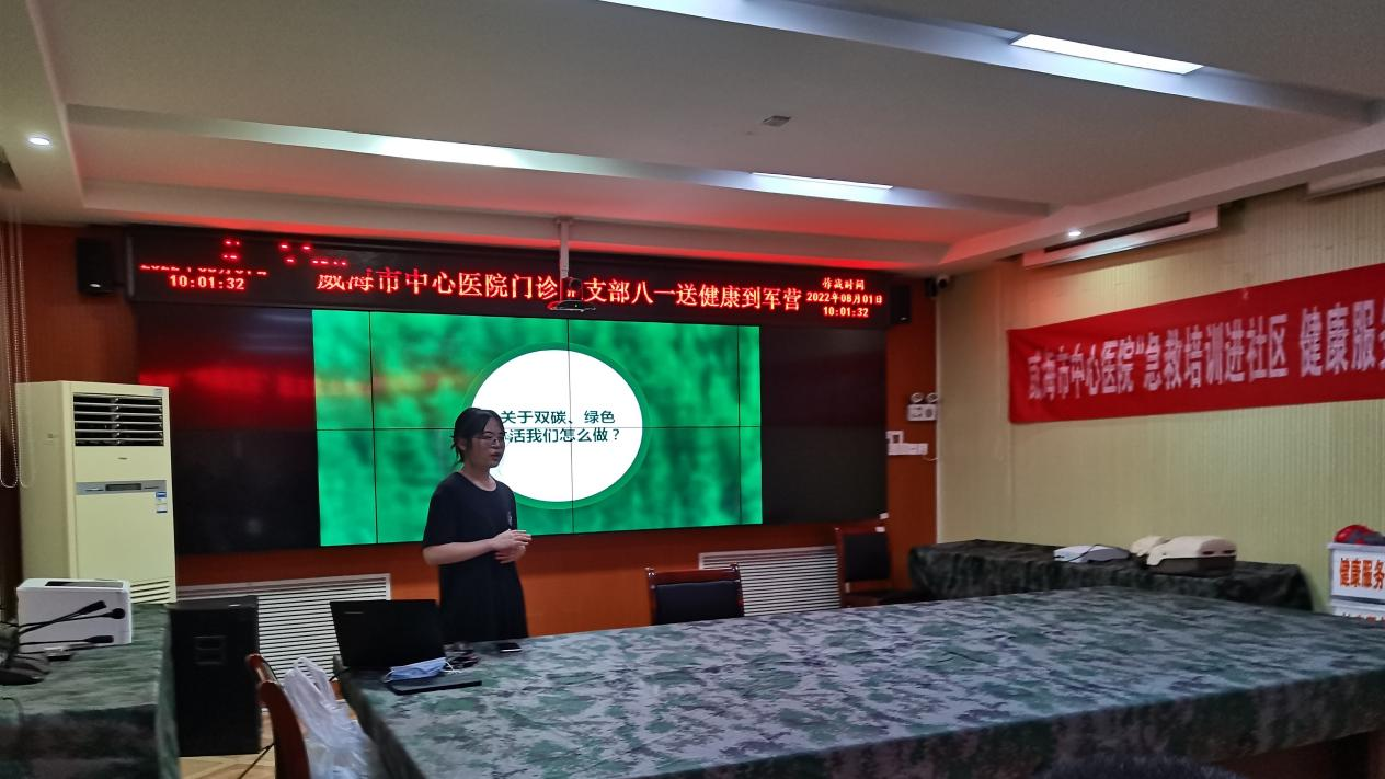 8月1日上午10点,山东大学成人在线免费视频“护园”赴山东多地关于双碳背景下城乡居民低碳意识调研宣讲团的团队成员董雨姝在山东省威海市文登区人民武装部开展宣讲活动。活动有数十名武装部战士参与,现场气氛良好、反响热烈。