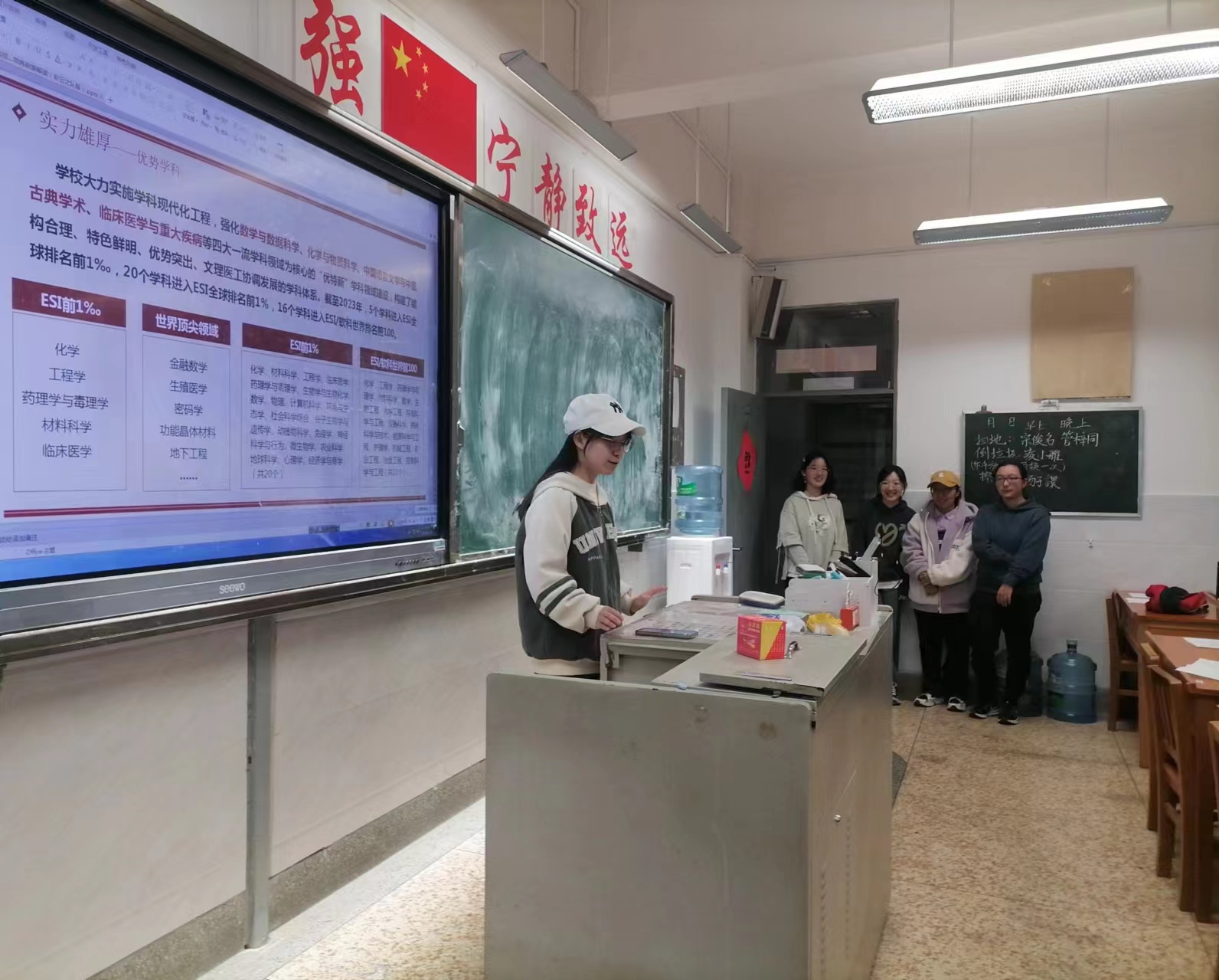 跨越山海,奔赴热爱。2024年2月23日,山东大学彩云之队回访母校宣讲团(以下简称“宣讲团”)来到云南师范大学附属中学,为在校师生宣讲山东大学招生政策信息、人才培养体系和学科建设特色等。云南师范大学附属中学杨静黎老师到会指导,高二年级学生参与宣讲会。近一个月来,山大彩云之队在云南省三个州市组织开展了多场宣讲活动,以“汇聚英才,为国育贤”为主题先后在云南师范大学附属中学、昆明市第一中学、云南民族大学附属中学等优质生源中学展示了“百廿”山大风采,云南师范大学附属中学作为山大彩云之队在云南省宣讲活动的最后一站,本次宣讲活动将为山大学子在云南省的宣讲足迹画上圆满的记号。