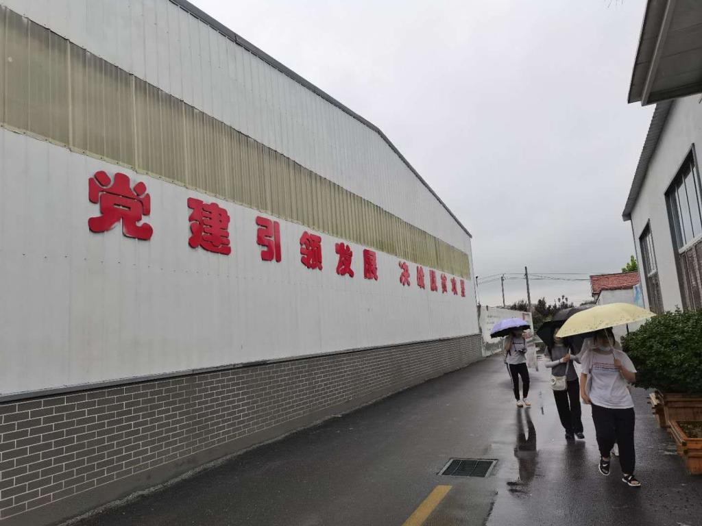 8月18日,队员们来到孟东村。初入眼帘的便是孟东村整齐划一的楼房,外侧统一刷上了黄色油漆,明亮却不张扬。穿过一排厂房,就来到了孟东村党支部。在这里,队员们见到了村支部书记孟庆恩。孟庆恩介绍,孟东村原来是贾庄镇有名的后进村,村内200户人家,有14户贫困,后来依据科学的管理办法和长效的脱贫机制,在2017年成功脱贫,这一脱贫时间,在商河县所有的贫困村中算是较早的。2020年,孟东村被评为了“全国乡村治理示范村”。 除了在财力上让村子“富”起来,孟东村也非常重视基础设施和文化建设。村内落成的孟子学院,依托于孔孟之乡的传统文化建设,学院外绿树葱葱,空气清新,设有富有特色的孟东村文化标识。学院内仿制古建筑,古色古香,颇有文化气韵。
