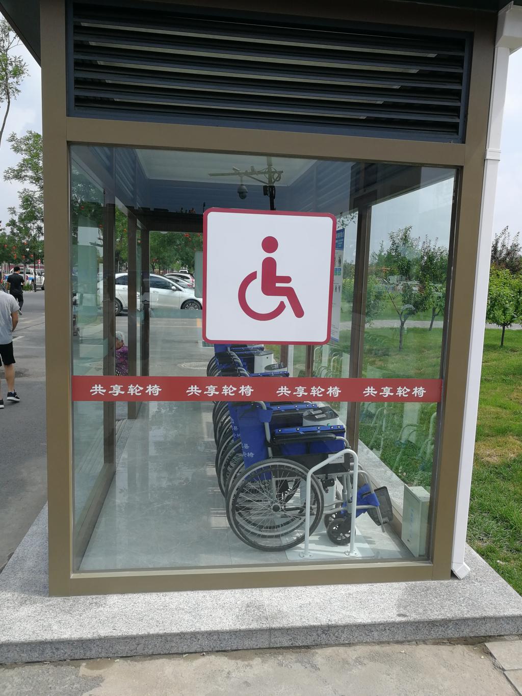 参观完厕所之后,团队成员前往参观城门对面的广惠寺等寺庙群。在这段路上,没有一家小摊小贩,景区十分清净祥和;环卫工人来往打扫,时刻保持着景区的清洁;交警来往执勤,使得新区交通井然有序;共享轮椅、共享汽车等新兴的共享物品出现在道路两边,一定程度上体现了社会风尚与共享经济的发展。