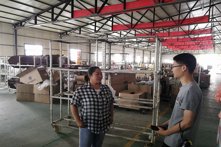 7月10日上午,山东大学成人在线免费视频“乡土几何”社会实践团队来到韩家楼本地的一个较大的电子钟表加工厂,与其中的管理人员、工人等进行交流,询问他们对于楼房和平房的生活空间差异、农村人际关系变化等问题的看法。