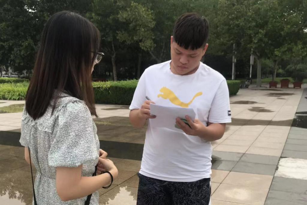 上午9时许,队员们在山东大学中心校区知新楼A座门前集合,分成两路,分别到知新楼、理综楼进行深入走访调研,虽然已在暑假中旬,但仍有许多学生在教室里刻苦学习。队员赵冬雪、周新洋二人前往知新楼B座,卢建如、宋光昕二人前往理综楼,队员们在各个教室向自习的学生们详细解释了本次调研的目的,对调查问卷的内容进行了说明,耐心解答受访人的疑惑,收到了被采访者的欢迎。