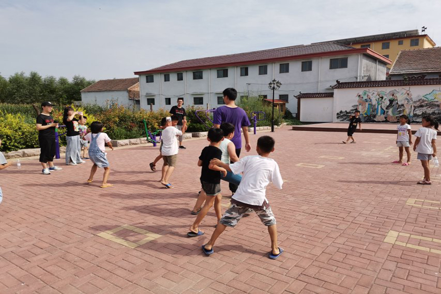 2019年8月23日,在走访调研的闲暇,山东大学哲社菏泽社会实践团队在葵堌堆村会盟广场与村里的孩子们一起进行了别开生面的趣味运动会。