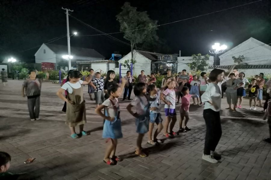 近年来,广场舞作为一种简单易学、轻松愉快的健身方式,愈发受到中老年人特别是中老年女性的青睐,并出现向年轻人群体中发散的趋势,成为现代生活中一种时尚的健康娱乐活动。哲社学院赴菏泽社会实践团队结合葵堌堆村人口的年龄性别结构和生活习惯,选择以广场舞的形式带动村民开展健身活动,一方面有助于村民强健体魄、提高身体素质、养成健康的生活习惯,另一方面为村民的日常娱乐活动提供新的形式、丰富村民的文化生活。