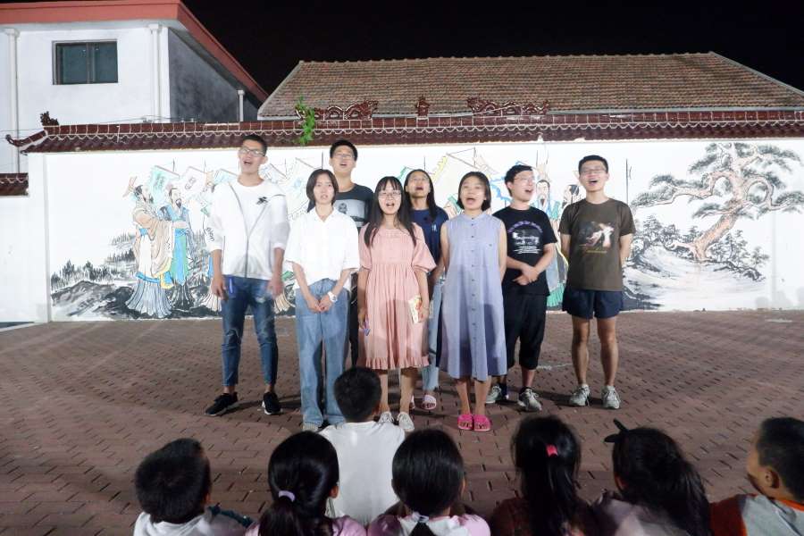 8月25日,山东大学成人在线免费视频赴菏泽社会实践团队将带来的图书分发给葵堌堆村中的孩子们,并在村内会盟广场组织开展文艺汇演活动,受到村民们的热烈欢迎。