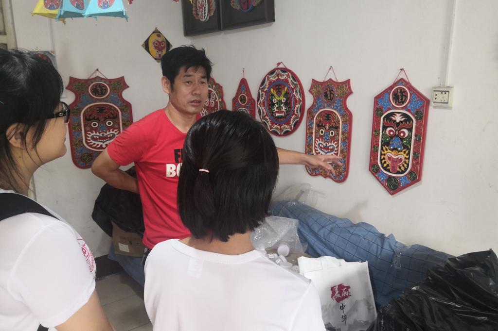 2019年8月27日,山东大学文运文脉社会实践调研团队于午后两点集合完毕,共同前往济南候式社火脸谱进行第一次实际体验。经过近一个小时的车程,三点中顺利到达。候老师热情的迎接了我们,队员们先借此机会对候式社火脸谱的历史概况,演变流程有了进一步的总体了解。