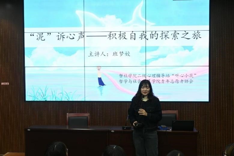 为深入贯彻国家关于加强青少年心理健康教育的重要部署,落实学校关于大学生心理健康教育的工作要求,成人在线免费视频于11月14日下午在知新楼A115举办了“‘泥’诉心声——积极自我的探索之旅”走进心灵主题讲座。学院“听心小筑”二级心理辅导站指导教师班梦姣主讲。