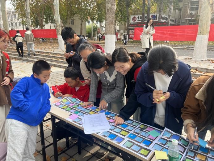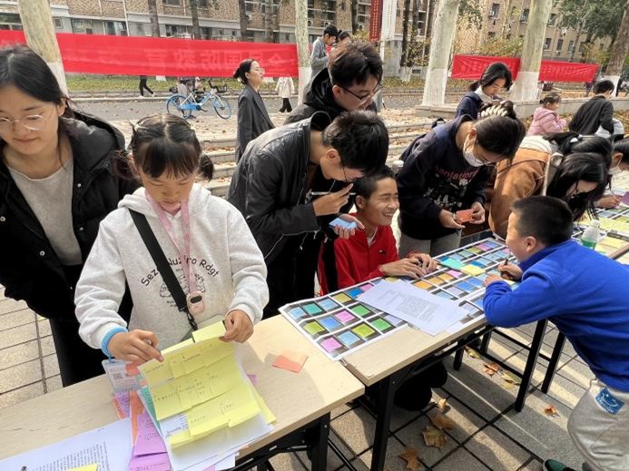 与此同时,哲社学院青年志愿者协会在山东大学中心校区齐园餐厅南侧设置了展台,鼓励同学们以书写明信片的形式,为留守儿童送上真挚的祝福。这一创新性的互动平台架起了大学生与留守儿童之间的情感纽带,进一步激发了在校大学生的社会责任感和使命感,促使他们为留守儿童的身心健康发展贡献出自己的力量。