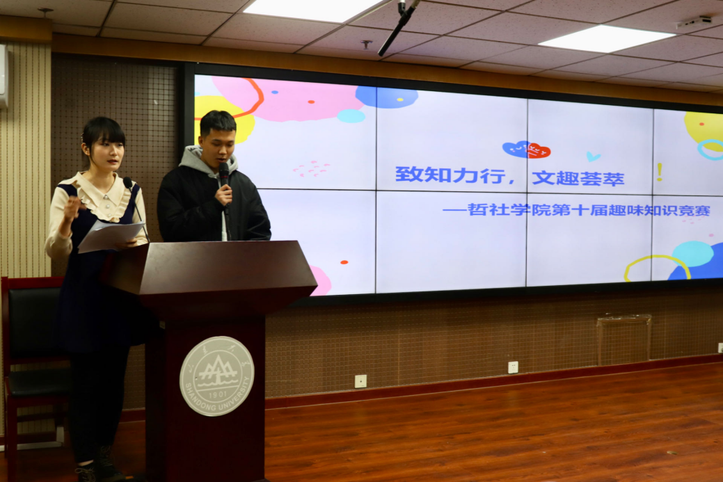 此次趣味知识竞赛设置线上答题初赛和现场答题复赛两个赛程环节,采用积分制计分,按照初赛成绩折算发放相应的积分作为复赛的基础分,复赛分为五个环节,包含文化模块和趣味模块。其中,文化模块包含“一站到底”和“飞花令”两个环节,趣味模块包含“谁是卧底”“此起彼伏”和“答题拍卖会”三个环节。题目设置结合了山大校情校史知识、中华传统文化知识、宪法法律知识及学习生活常识,实现了将智育寓于趣味活动,融文化于精彩纷呈。经过自主学习和线上答题选拔,在初赛环节共有12支队伍脱颖而出,成功晋级决赛。