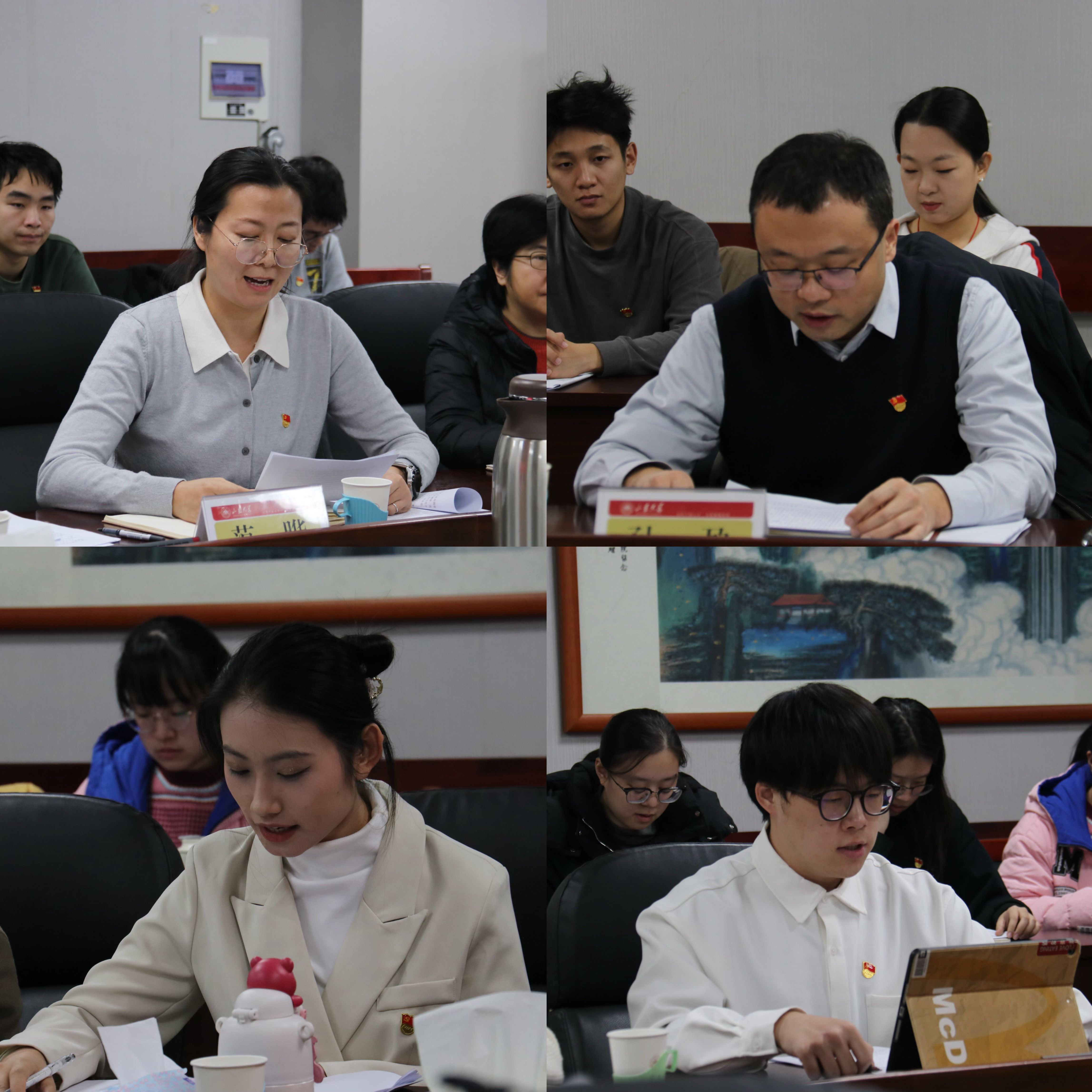 支部党员围绕习近平总书记重要讲话内容畅谈心得,交流分享。审计处党支部党员范晔和孙盈结合审计工作实际,就如何在学习工作实践中提升道德修养和业务能力,更好地服务广大师生、助力教育强国建设作专题分享。学硕第一党支部张泽宇和郭昊天立足所学专业,就哲社学子如何发挥学科优势,融合专业特色,助力强校兴国与大家进行交流。