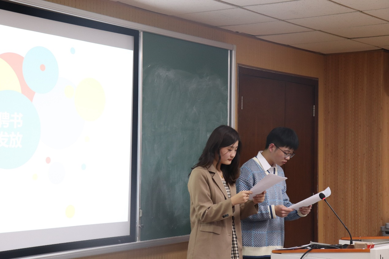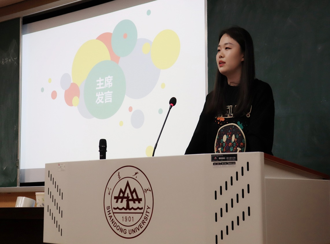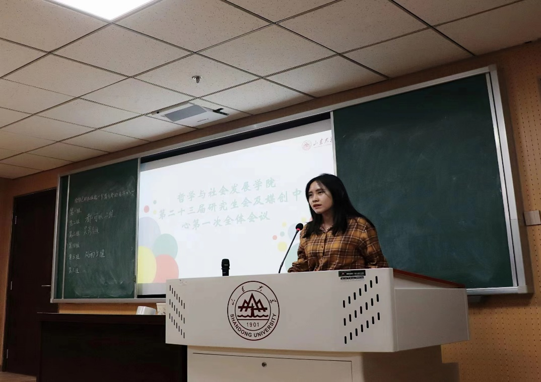会议中,研究生会指导老师封莹老师、新生代表李润青同学、研究生会主席陈滢如学姐依次上台致辞发言,封莹老师主要从学生工作的角度出发,给新一届研会成员提出了几点要求和新的期望,言语间透出对同学们的关怀与期盼;李润青同学从自身学习感悟为切入讲出了新一届研究生必将坚定努力走好新征程的心声;陈滢如学姐从过去一年自身在研会的收获与成长对大家进行了分享,温情满满。