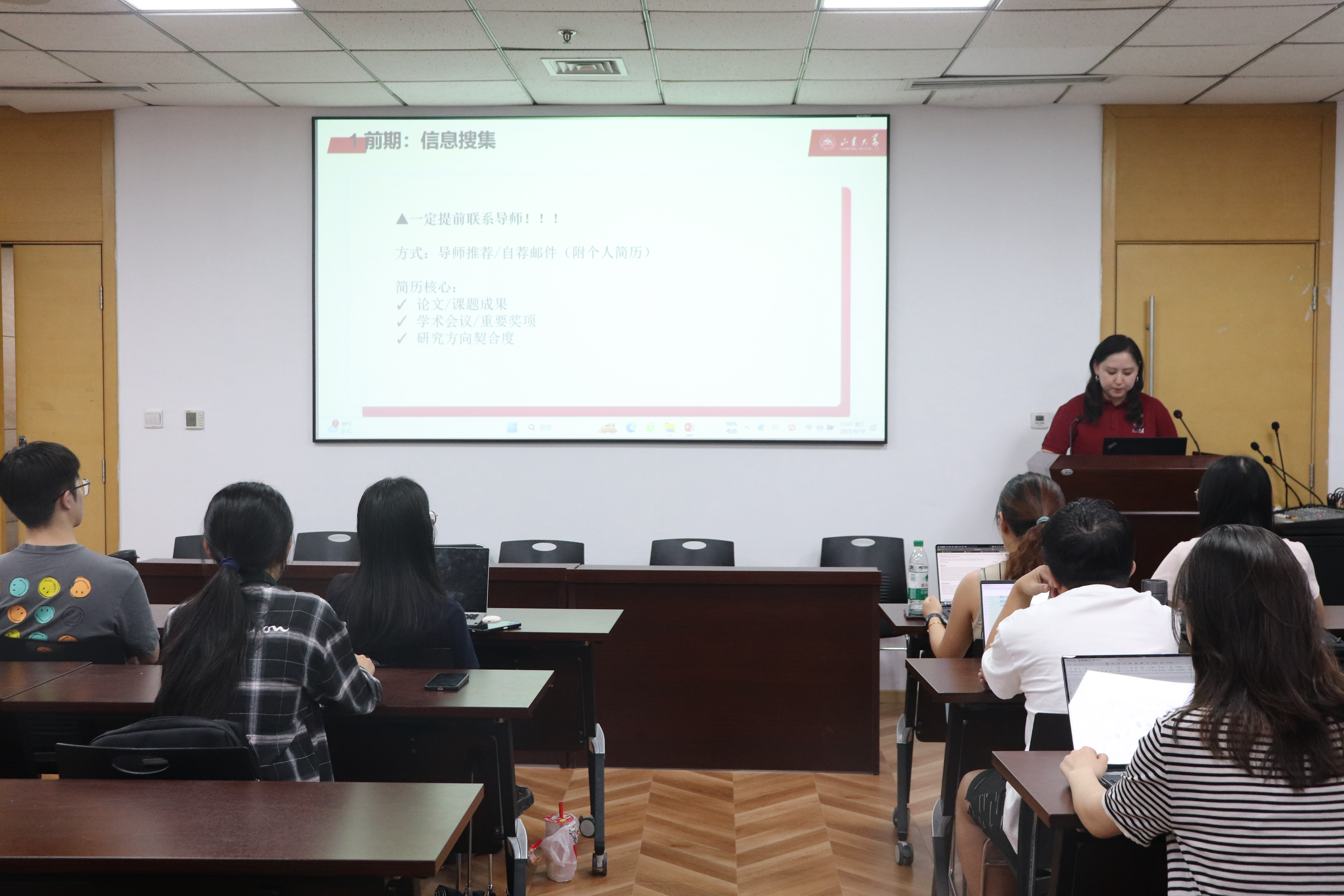 2022级社会工作专业硕士研究生李旭旭从自身经历出发,细致讲解了选择学校、联系导师、积累成果、提升英语等关键环节的方法经验,她鼓励同学们要敢于交流、勤于尝试,以充分的准备迎接可能的挑战。