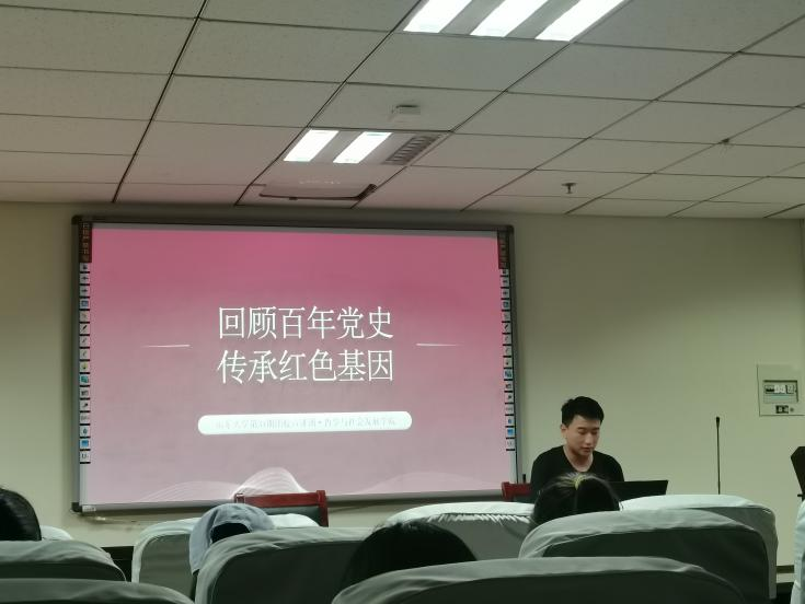 2021年5月19日晚19:00,成人在线免费视频党史宣讲活动在知新楼A1408顺利举行。本次活动由山东大学第三十一期团校成员组成的哲社党史宣讲一队主持,19级社会学班常张杰主讲,面向20级哲学强基班和20级社会学二班的全体同学开展。