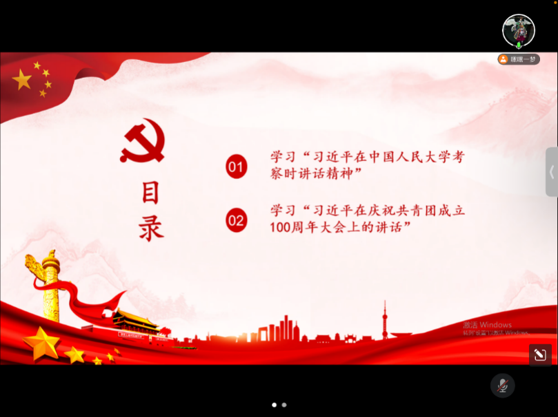 2022年5月12日,哲社学院学术硕士第二党支部开展主题党日活动,学习贯彻习近平总书记在中国人民大学考察时的重要讲话精神和在庆祝中国共青团成立100周年大会上的重要讲话精神。支部预备党员鉴伟伟同志主持活动并领学。