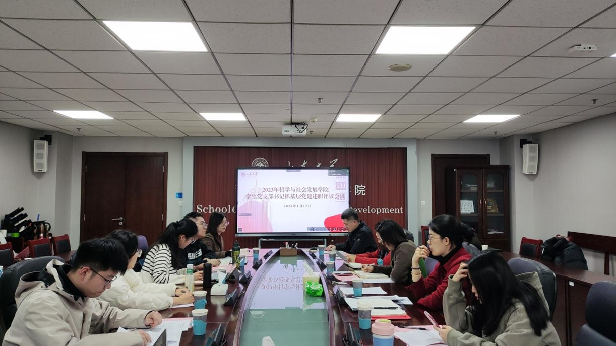 为深入学习贯彻习近平新时代中国特色社会主义思想和党的二十大精神,全面检验党建工作质量,进一步压紧压实党支部书记履行全面从严治党主体责任和抓基层党建工作职责,哲学与社会发展学院党委于1月17日在中心校区知新楼A1618室组织召开2023年度学生党支部书记述职评议会议。学院党委副书记马燕、翁祥栋到会指导,学院团委书记班梦姣、学院党务秘书孙德炜、辅导员封莹和吕汶鑫以及学院学生党支部书记和部分党员同志参加会议。