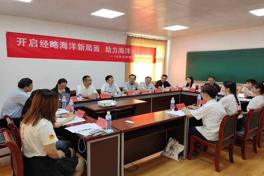 天高云淡,青岛七月的天空一如既往得迷人。今天下午,我们团队在青岛市团校参加了“服务山东·山大方案”山东大学硕博服务团社会实践座谈会,这标志着我们团队社会实践正式启动。山东大学副校长韩圣浩、青岛团市委副书记赵全超等参加了座谈,这让我们深受鼓舞。